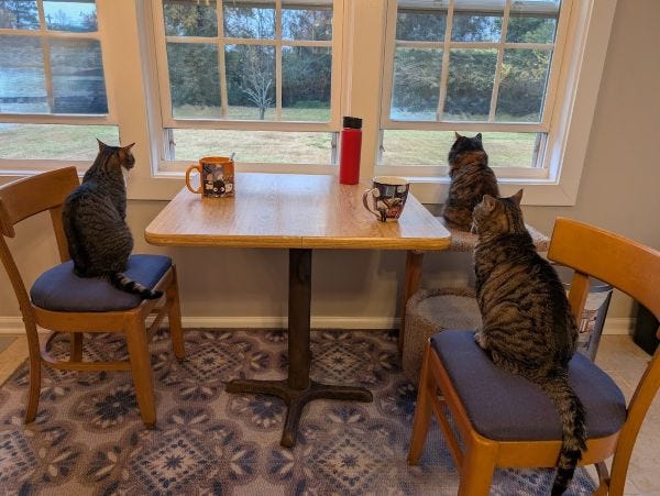 Boudicca, Pip, and Tiger are enjoying the view with the windows open.